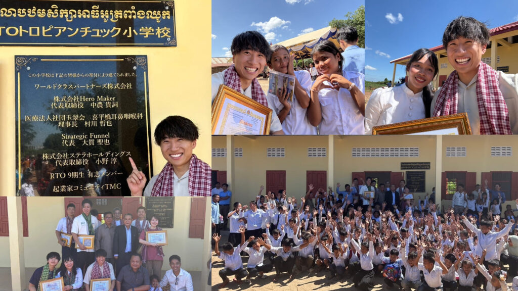 事業利益の一部を寄付してカンボジアに小学校を2つ建設して大臣から表彰されました。