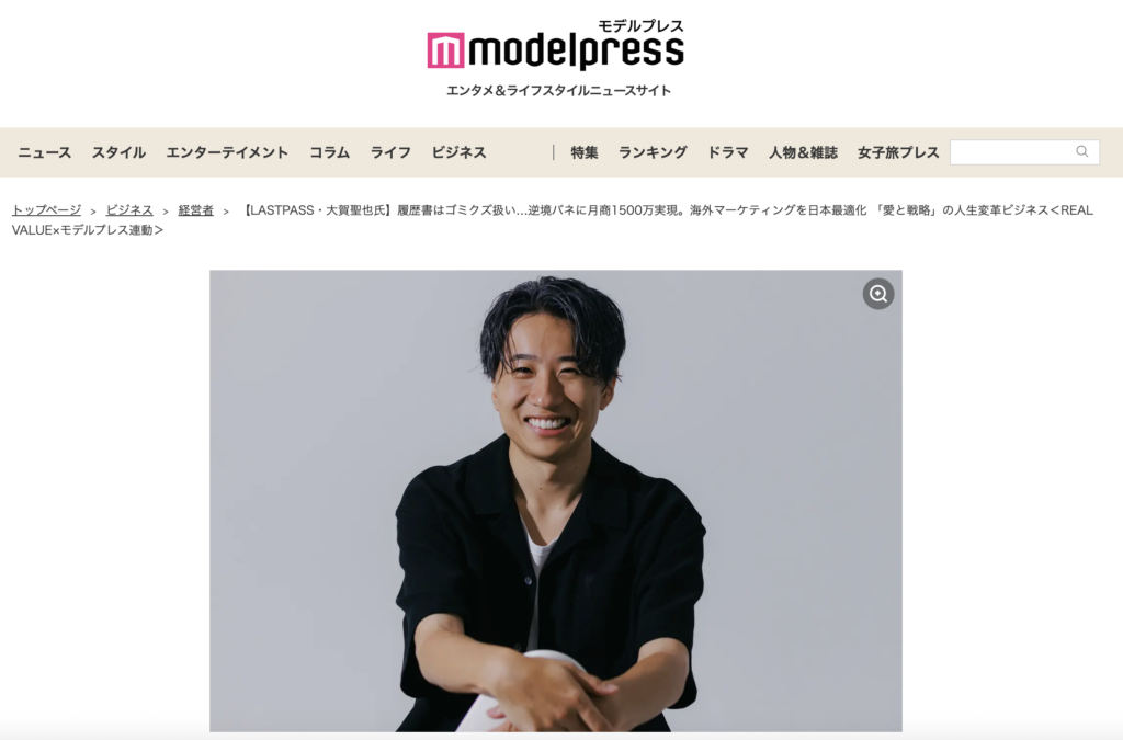 堀江貴文・溝口勇児・三崎優太による経営エンターテイメント番組「REAL VALUE」と「モデルプレス」の共同インタビュー企画。今回は株式会社LASTPASS代表取締役・大賀聖也(おおがせいや)氏(31)に、生い立ちやこれまでの経緯、成功を掴むまでのエピソード、ビジネスで大切なことを聞いた。「REAL VALUE」は堀江貴文・溝口勇児・三崎優太の3人と各業界のスペシャリストが、本物の起業家を見極め、悩めるすべてのビジネスパーソンに“本当の価値と、本質的な学び”を説いていく番組(※堀江・三崎公式YouTubeで配信中)。